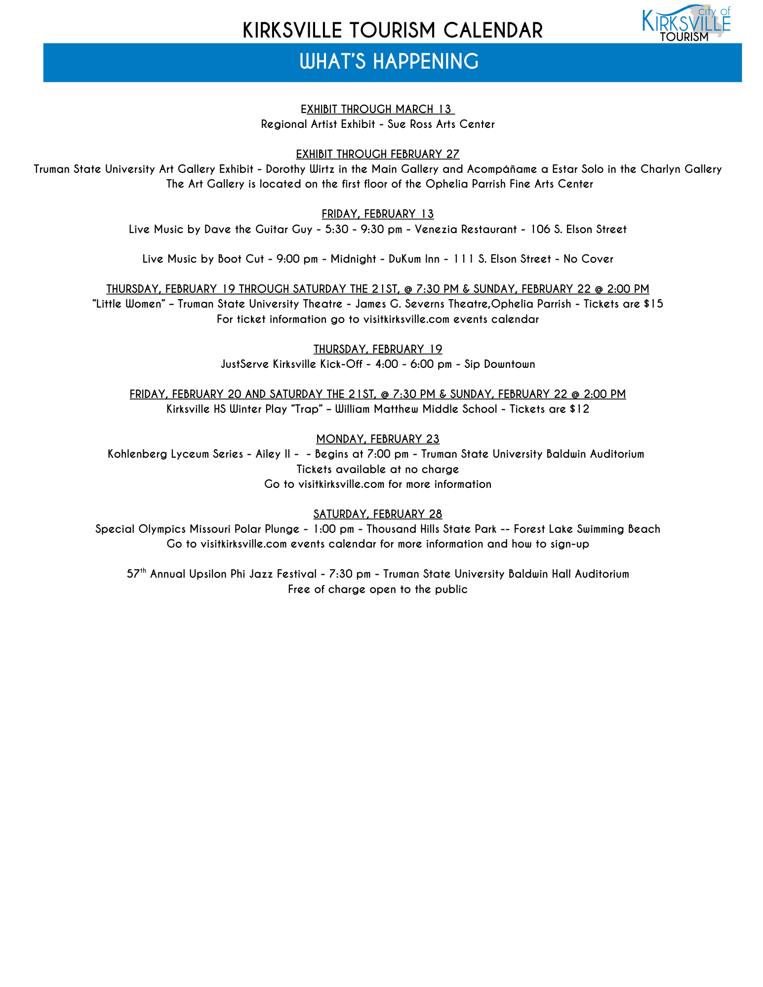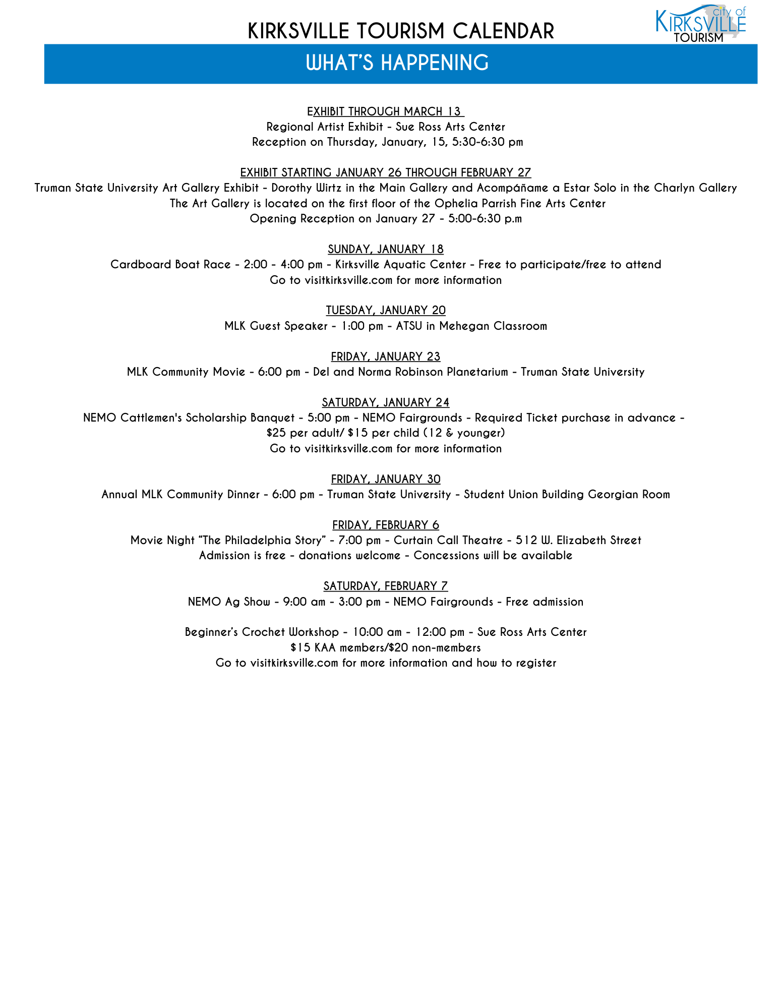 Truman Calendar of Events - Click here